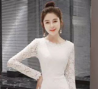 タイトなマーメイドデザインで女性らしいスタイルに、さらに袖レースがアクセントとなり、より上品な雰囲気を演出してくれます。