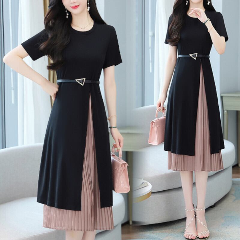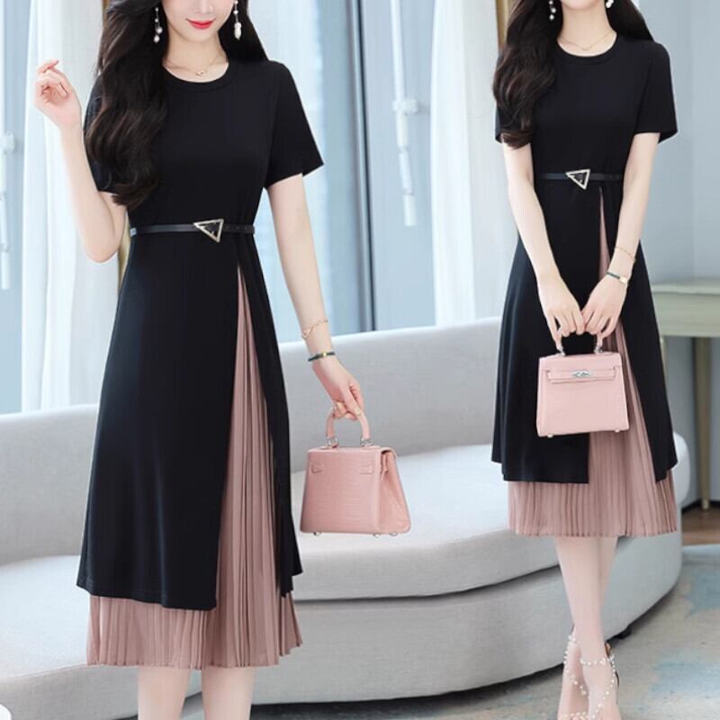 プリーツ加工が施されたスカートが動くたびに揺れるワンピース