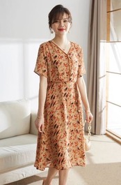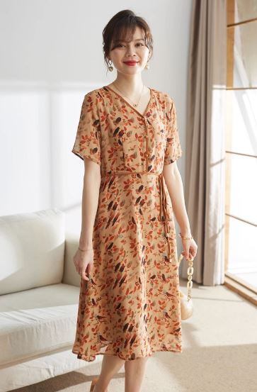ボタニカルな小鳥柄がなんとも可愛らしい、シフォンワンピースです。