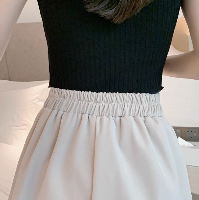 可愛くてカジュアルなミニスカートです。なかはショートパンツで動きやすく、ウエストはゴムでラクチンなのに着回しが効く万能アイテム。サイズ展開も豊富です。