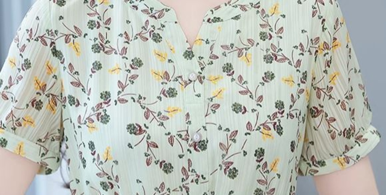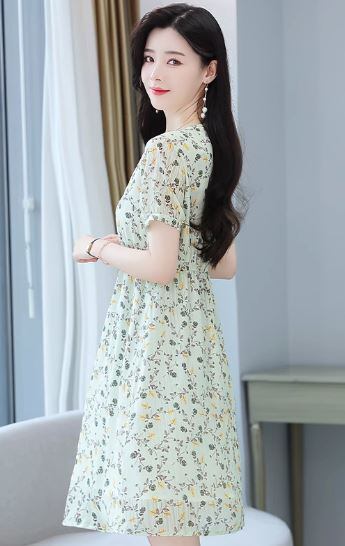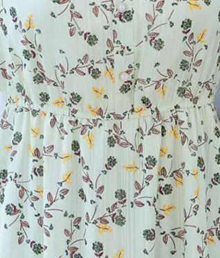 爽涼感があるカラーと可愛らしいボタニカル柄の、半袖ワンピースです。