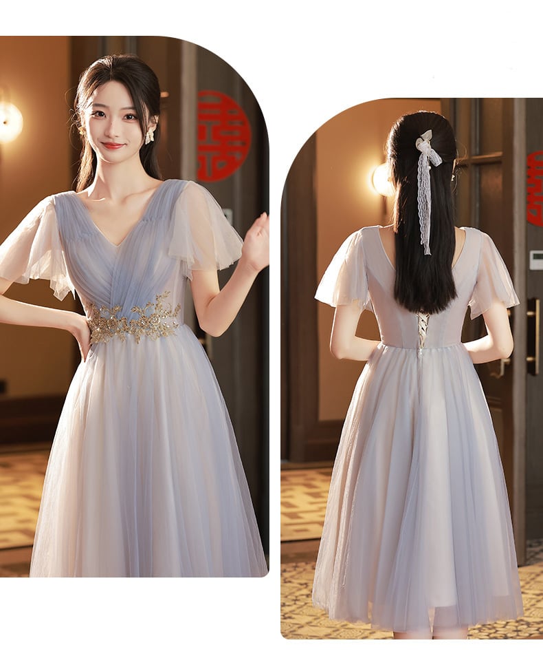 可憐な花嫁介添人、あなたの夢を叶えます。このブライドメイドドレスは、4タイプから選べるデザインで、妖精のような存在感を放ちます。膝丈の上品なシルエットに、華やかな袖がアクセントとなり、大人の女性にぴったりのドレスです。