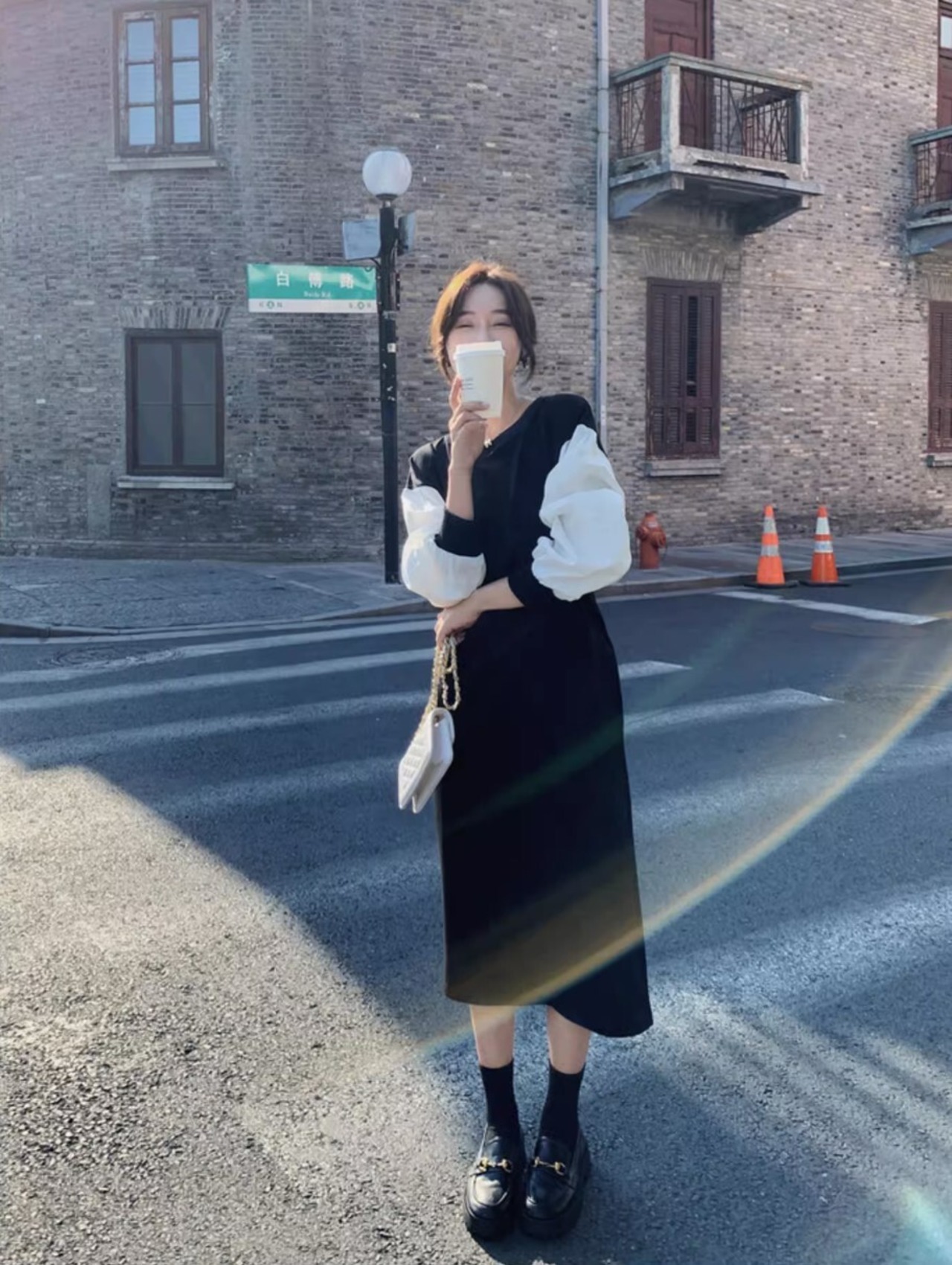 コントラストカラーが特徴の袖異素材ニットワンピースです。大人可愛いデザインで、上品かつおしゃれな印象を演出します。着心地の良いリブニット素材を使用しており、シルエットも美しく見せることができます。