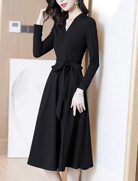 エレガントで可愛らしいドレスワンピースをご紹介します。Aラインのシルエットが女性らしさを引き立て、ウエストリボンがメリハリをつけてくれます。Vネックデザインでデコルテラインも美しく演出し、上品な印象を与えます。