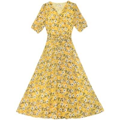 どんなシーンでも大活躍のシフォンワンピースがお目見えしました!さらっとした薄手の素材感と、女性らしいAラインのシルエットが魅力です。Vネックのデザインで華奢なデコルテラインを演出し、ミディアム丈のデザインなので膝下から程よく抜ける女性らしいスタイリングになります。ウエストリボンや花柄のデザインにより、一気に可愛さをプラス。デートやお出かけ、女子会などの特別な日にもピッタリですが、カジュアルな普段使いにも合わせやすいアイテムです。