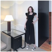 リラックス感のあるゆるシルエットが特徴のオールインワンです。フリルショルダーが二の腕をカバーしてくれます。ウエストリボンなどの可愛らしいディテールが、女性らしさを引き立てます。ハイウエストデザインで脚長効果も抜群です。