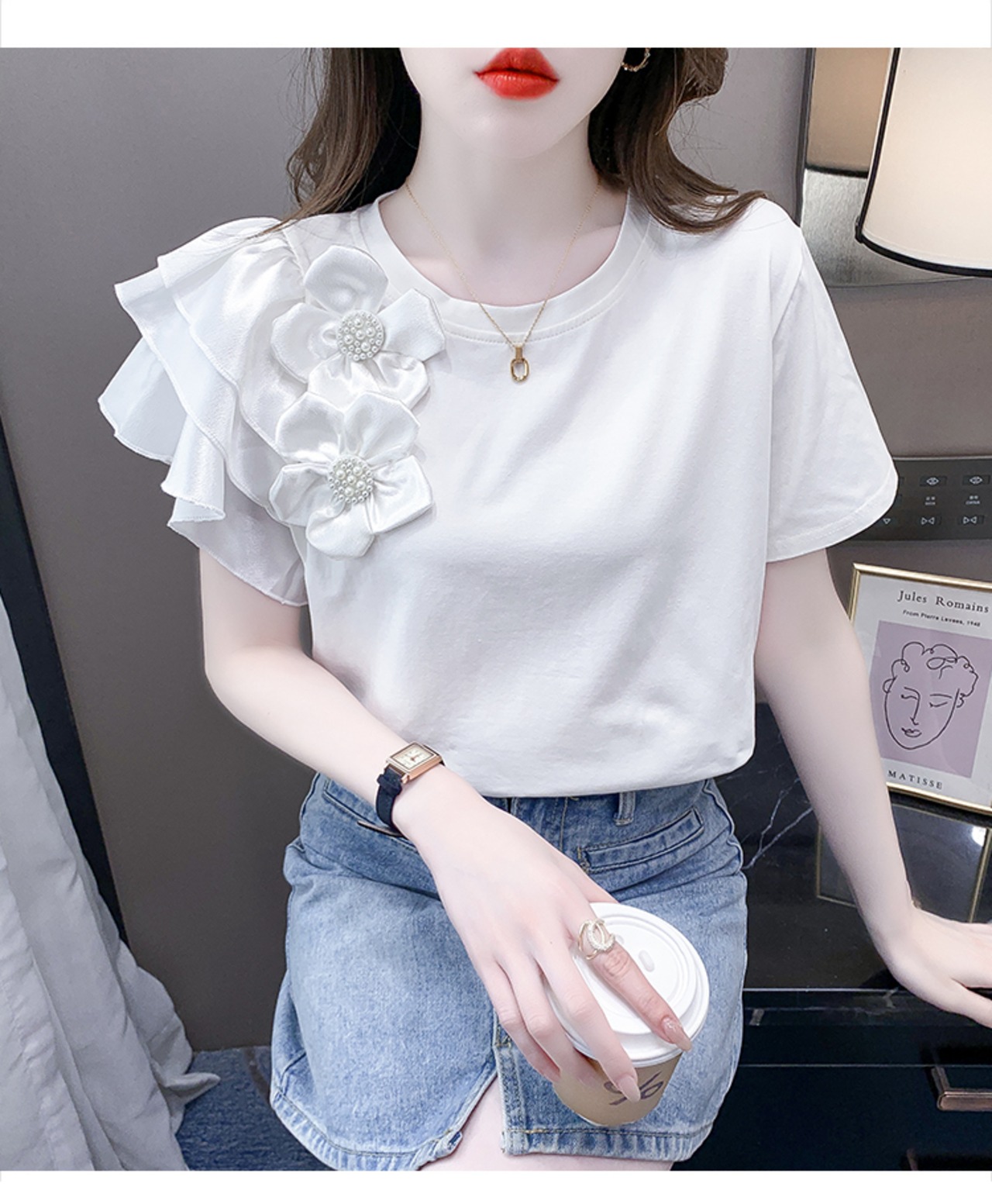ショルダーフリルデザインのTシャツは、大人可愛い雰囲気と上品なスタイリングを叶えるアイテムです。シンプルでありながらも個性的なデザインが、大人女子のおしゃれ心をくすぐります。