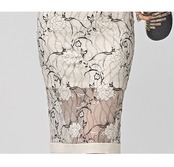 花柄のレースとフリルの組み合わせが、上品でエレガントな雰囲気を演出します。