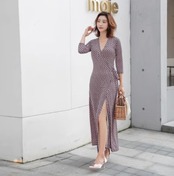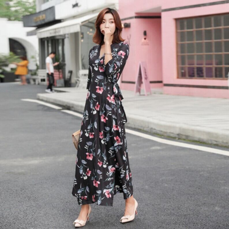 Vネックプリントラップドレスは、大人可愛い上品さと個性的なデザインが魅力です。ロング丈の長袖なので、春夏のお出かけやデートにもぴったり。Vネックのデザインがデコルテを美しく演出し、女性らしい魅力を引き立てます。
