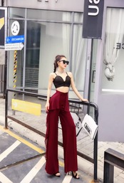 ワイドなシルエットが魅力のパンツ。ハイウエストなデザインで、大人可愛いおしゃれコーディネートにぴったりです。シフォン素材とフリルのデザインが女性らしさを引き立て、カジュアルからきれいめまで幅広いスタイリングに対応します。