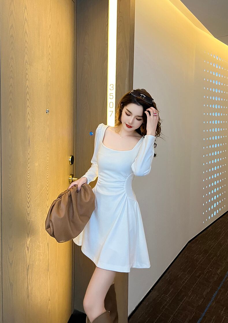 スクエアカラーのAラインスカートワンピースは、大人可愛いデザインと上品さを兼ね備えた一枚です。ショート丈と袖ありのデザインで、女性らしいスタイルを演出します。無地のシンプルなデザインなので、どんなトップスやアクセサリーとも相性抜群。