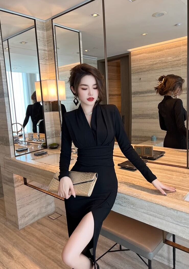 このドレスは、上品で洗練された大人可愛いスタイルを演出してくれます。ミディアム丈で、袖も長めに設計されているので、きれいめカジュアルから大人上品なスタイルまで幅広く楽しむことができます
