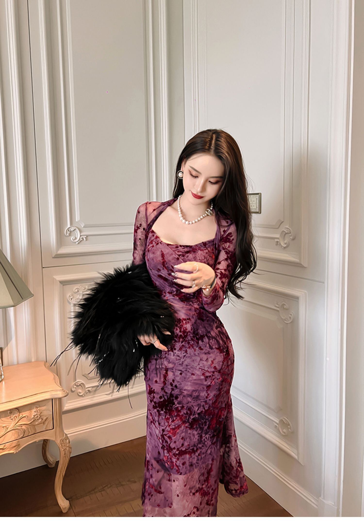 このワンピースは、大人可愛いスタイルを演出してくれます。ミディアム丈でありながらも、マーメイドのシルエットが女性らしさを引き立てます。さらに、メッシュのデザインがセクシーさをプラスしてくれます。