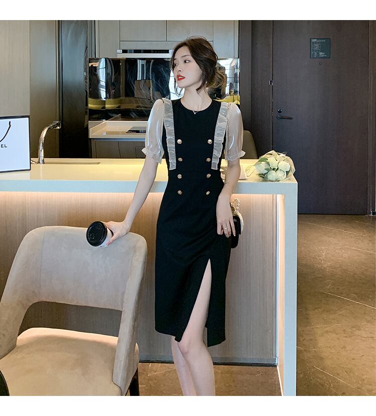 このフレンチスリットサマードレスは、女性らしさと上品さを兼ね備えた一枚です。ミディアム丈のデザインと半袖のスリムなシルエットが、大人可愛いスタイルを演出してくれます。さらに、フレンチスリットのディテールがセンシュアルな魅力を引き出し、存在感のあるスタイリングを叶えます。