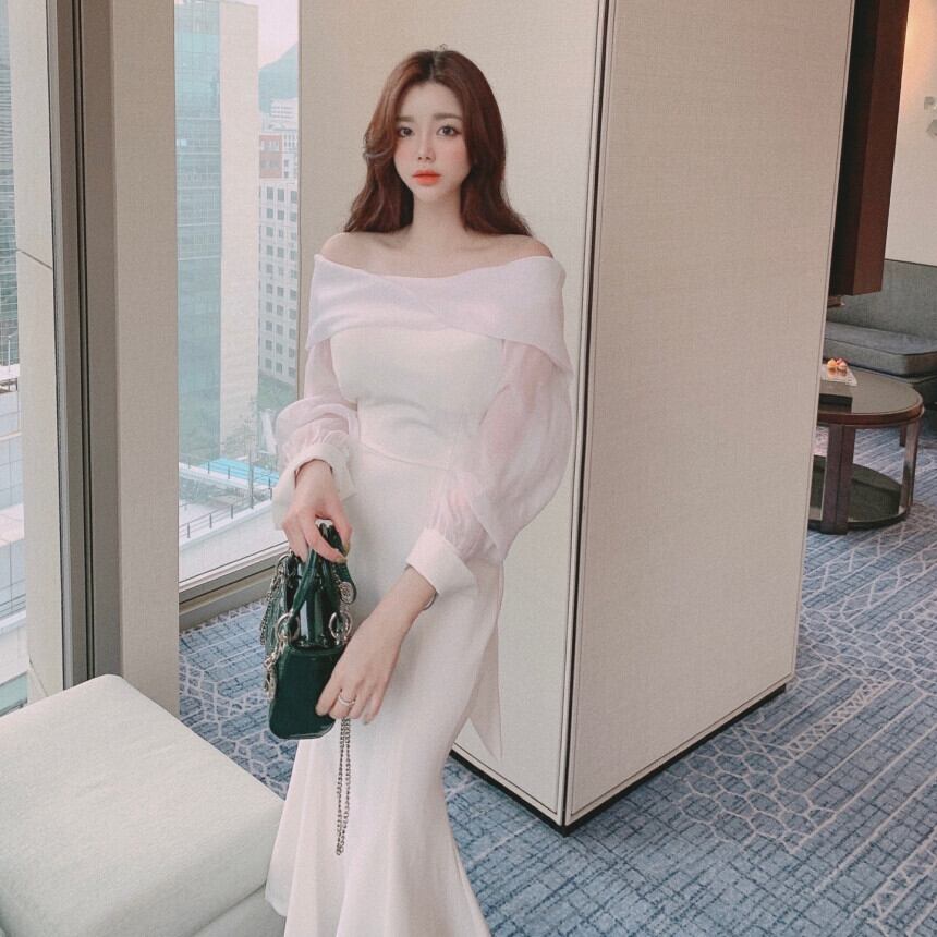 デートやお出かけ、パーティーシーンにぴったりの一着、パフスリーブストラップフィッシュテールワンピースです。トレンドのパフスリーブが袖にアクセントを加え、女性らしい雰囲気を演出します。