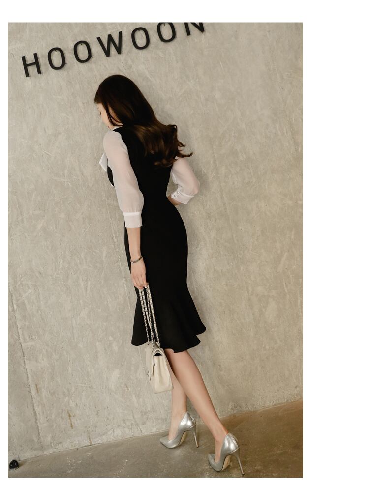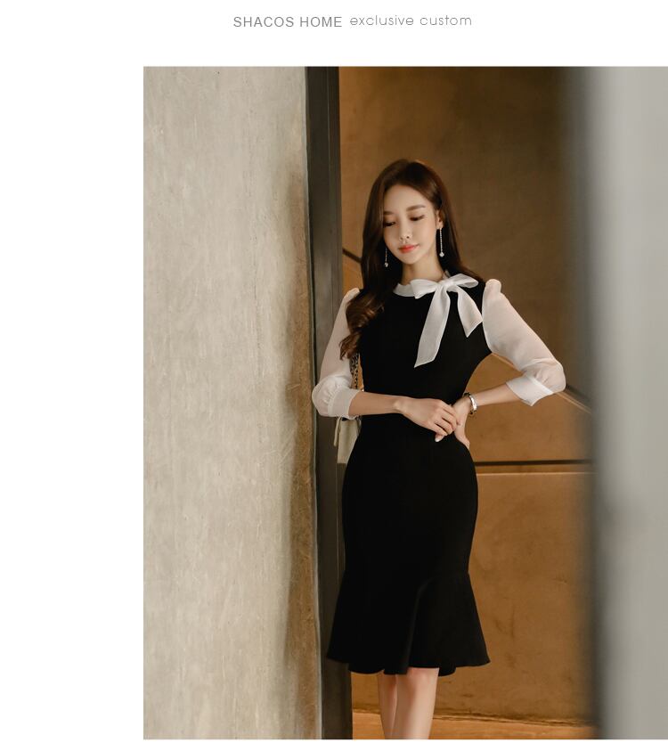 おしゃれなデートに最適なワンピースです。膝丈でありながらセミフレアのシルエットが美しいため、細身やAラインが素敵に引き立ちます。袖ありで、7分袖のデザインもあり、清潔感と女性らしさを演出してくれます。シフォン素材とフリルのドッキングが施され、透け感とかわいさを兼ね備えています。