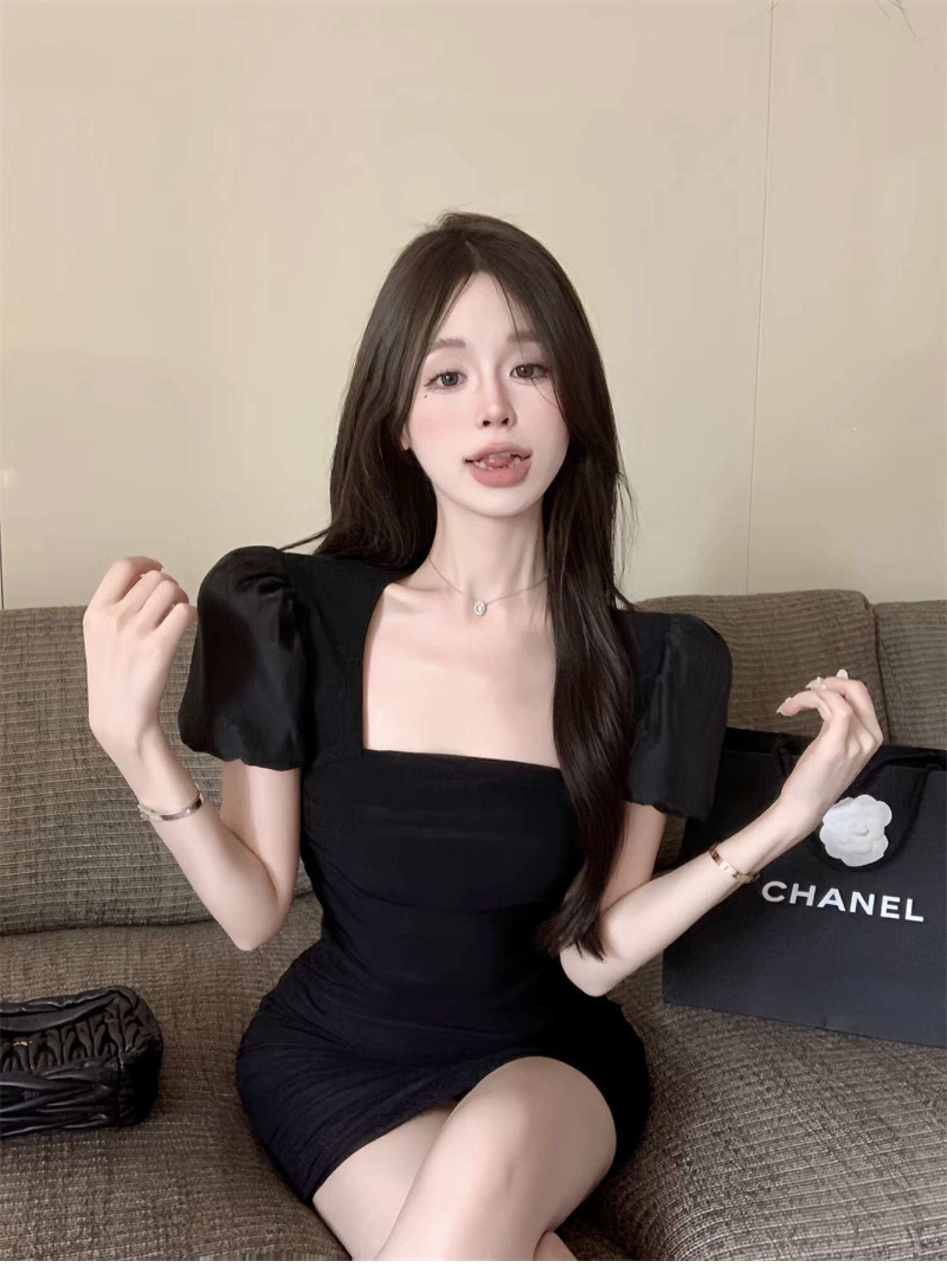 甘さと可愛さが溢れるフレンチバブル プリーツメッシュ バックヒップドレス ワンピース。ショート丈で袖ありのデザインは、女性らしさを引き立てます。かわいらしくて上品な大人可愛いスタイルにも、カジュアルなお出かけにもピッタリのアイテムです。