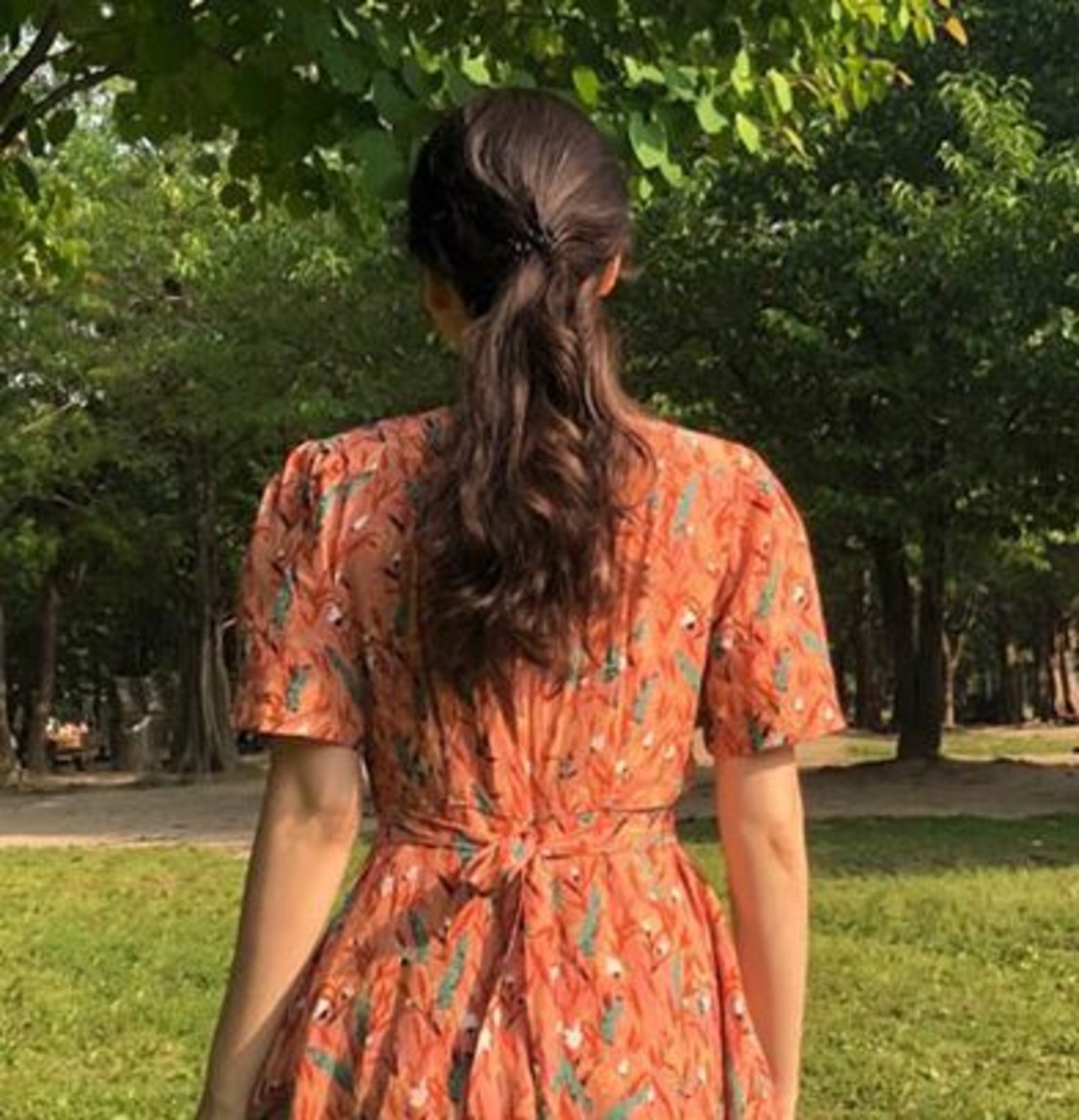 個性的で存在感バツグンの、ボタニカル柄ラップスカートワンピースです。