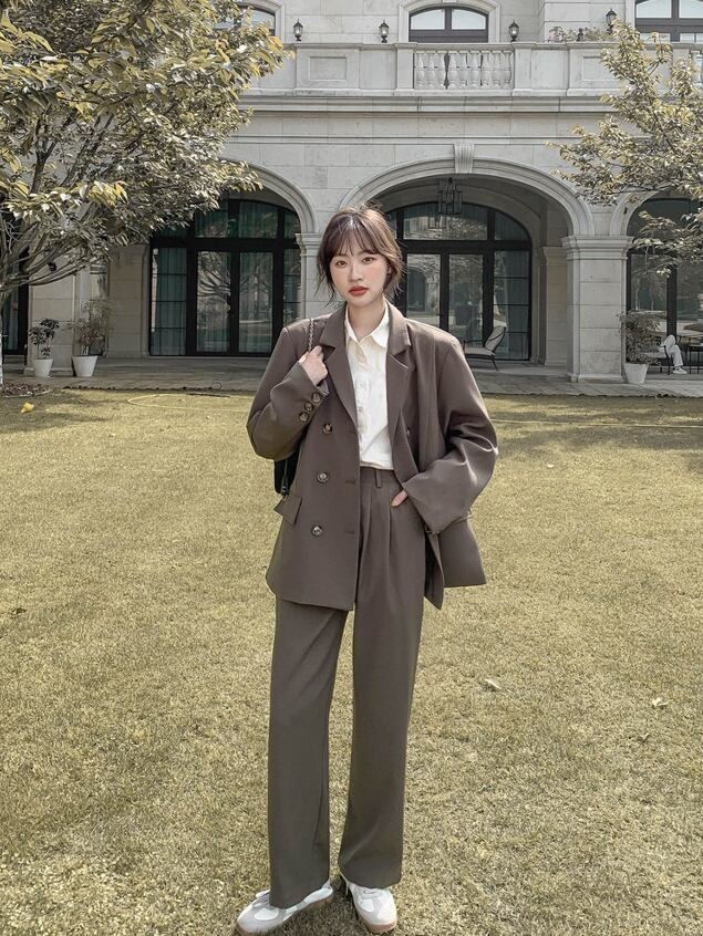 シンプルで上品な存在感を放つジャケットとズボンのセットアップ。スタイリッシュなニュアンスとモード系の要素が融合し、大人可愛い雰囲気を演出します。お手持ちのトップスやアイテムと合わせることで、さまざまなシーンにマッチします。