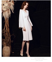 Vネックとフレアのデザインが女性らしさを引き立てます。マーメイドシルエットでスリムな印象にもなります。シンプルながら個性的でクールなデザインは、あなたのこなれ感やおしゃれな印象を演出します。大人女子にぴったりな上品さとモード系のエッセンスが詰まっています。謝恩会や結婚式、二次会、披露宴など様々なフォーマルな場面にもお勧めです。