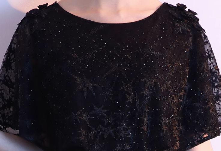 ケープ風トップスにあしらわれたレースが、なんとも魅力的。