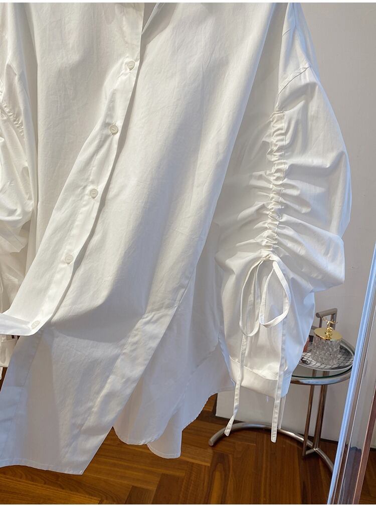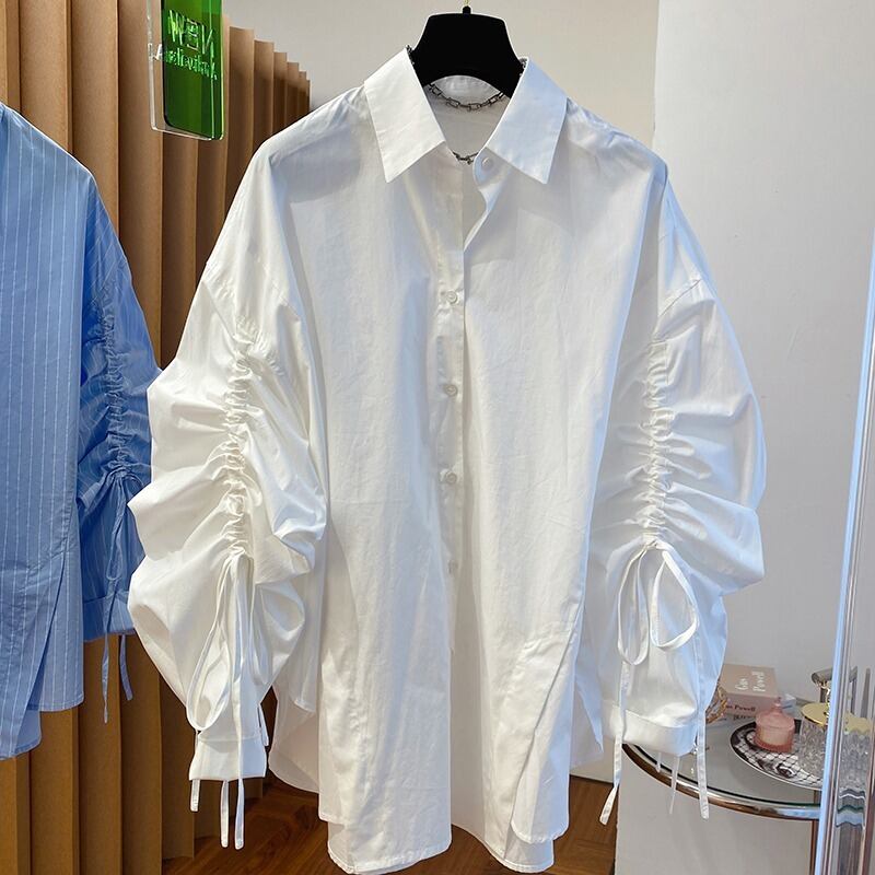 ギャザーを絞ってボリュームのある袖デザインとドロップショルダーが特徴で、シルエットも美しく、女性らしい雰囲気を演出してくれます。薄手の素材で程よい透け感もあります。シンプルながらもカジュアルから上品なスタイルまで幅広く活躍するアイテムです。