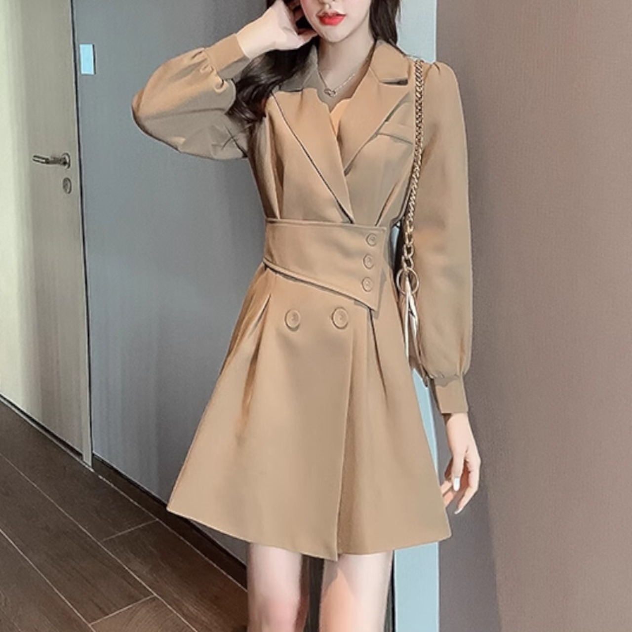 ハイウエストに付けられた太めのベルト飾りが目線を上に集めスタイルアップ効果◎