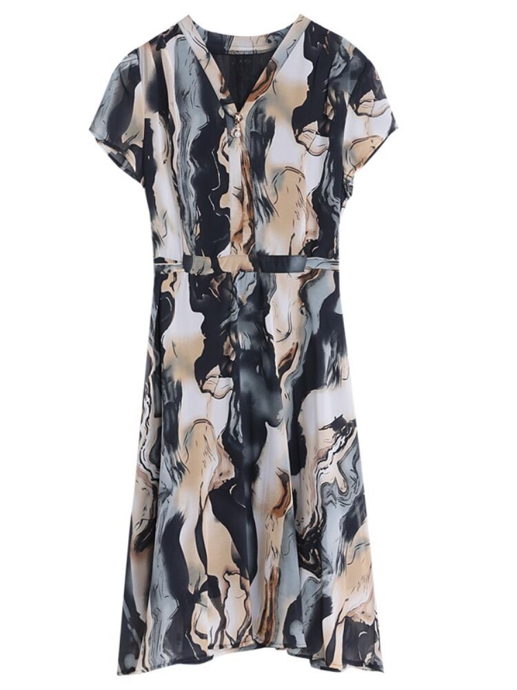 シフォン素材とフレアシルエットが魅力の大人可愛いフレアワンピース。Vネックのデザインが女性らしさを引き立て、膝丈なのでオフィスやデートなど様々なシーンで活躍します。透け感のあるシースルー素材が涼しげで、夏にぴったりな一着です。シンプルな柄とカラーニュアンスで洗練された印象を与え、大人女性の上品さを引き立てます。モード系やエレガントなスタイルにも合わせやすく、体型カバーも叶えます。