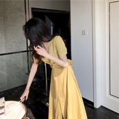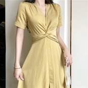 フレンチニッチのデザインが優雅な印象を与え、ウエスト痩身仕様でスタイルアップ効果も期待できます。さらに、繊細で透け感のあるシフォン素材が軽やかな印象を与え、夏にぴったりのアイテムです。