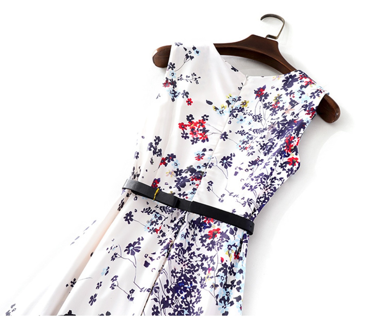 清涼感あふれるミモレ丈のフレアワンピースが登場しました。Vネックとウエストマークのデザインが女性らしさを引き立て、シンプルで上品な雰囲気を演出します。さらに、タイトなスリムシルエットとAラインのフレアがバランスよく組み合わさっており、スタイルアップ効果も期待できます。