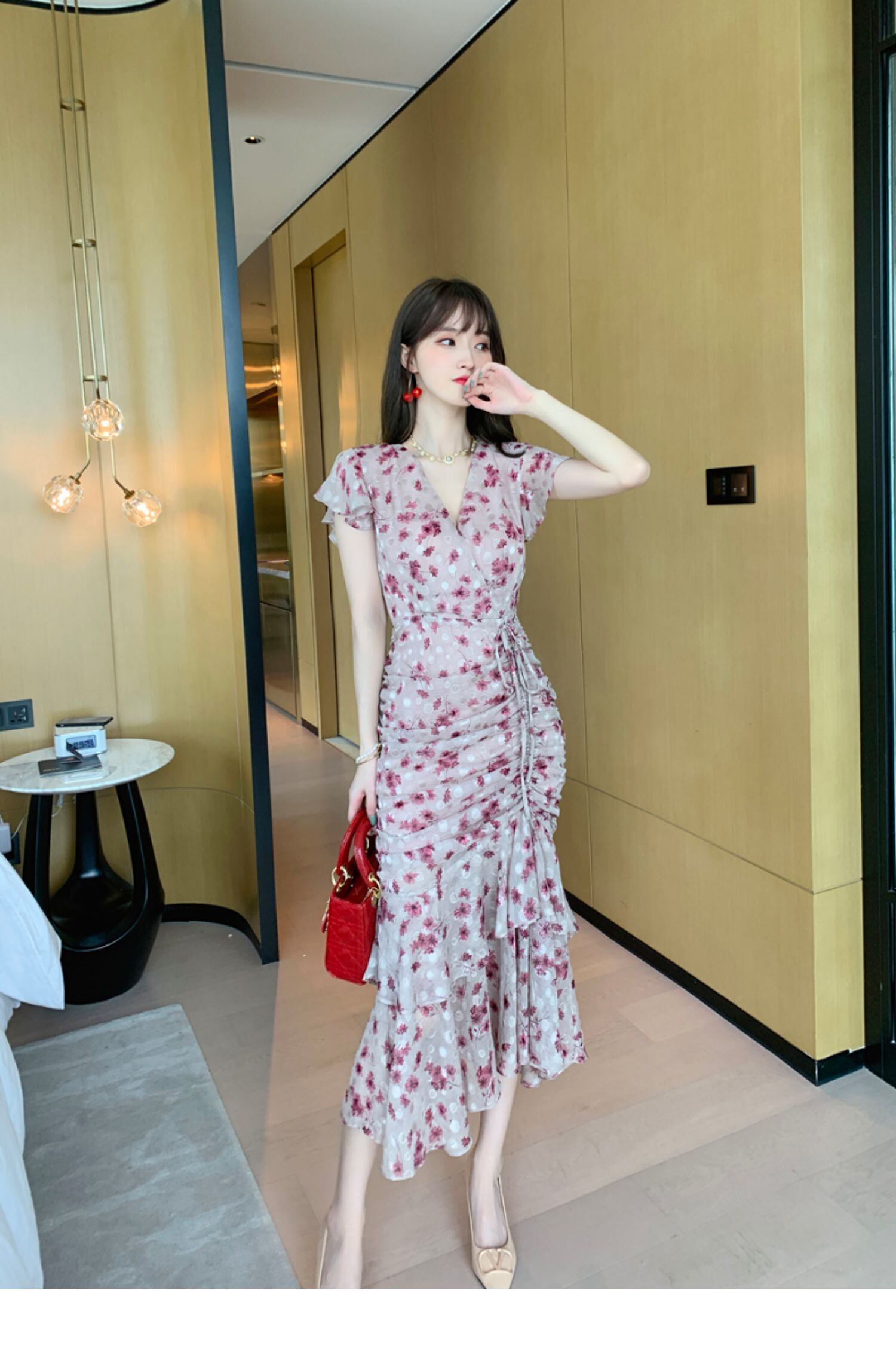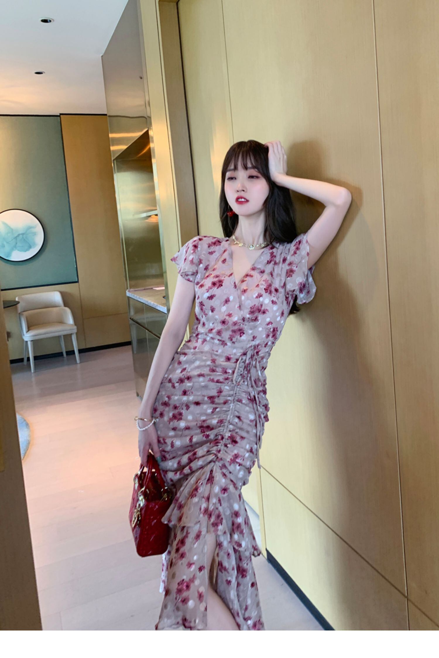 エレガントなVネックとフリルスリーブ、そしてミモレ丈が魅力のワンピースです。スリムなシルエットが身体のラインを引き締め、ウエストリボンが女性らしいメリハリを演出します。さらに、セクシーなスリットが足元を引き立て、存在感のある花柄プリントが華やかさをプラス。大人上品な雰囲気の中にも個性的でモダンな魅力があり、必ず周りの人々の視線を惹きつけることでしょう。
