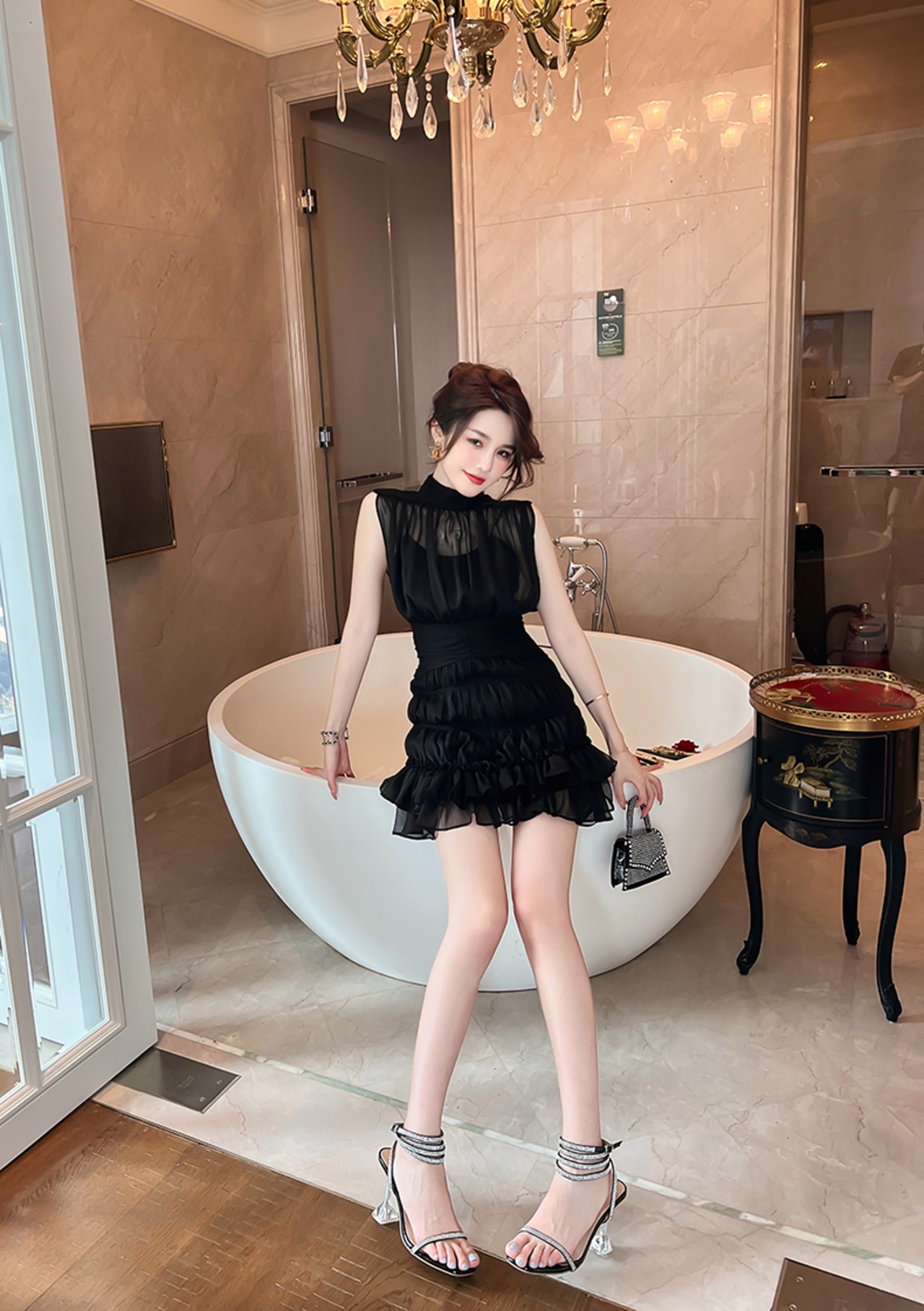 注目の定番アイテム、ミニ丈ワンピドレスが新登場!デート、お出かけ、休日、パーティー、イベントなど、多様なシーンに対応できるデザインです。ハイネックとスリムタイトのシルエットがスタイリッシュでありながら、フリルや透け感のあるディテールが可愛らしさをプラス。大人可愛い、上品でおしゃれな印象を演出します。