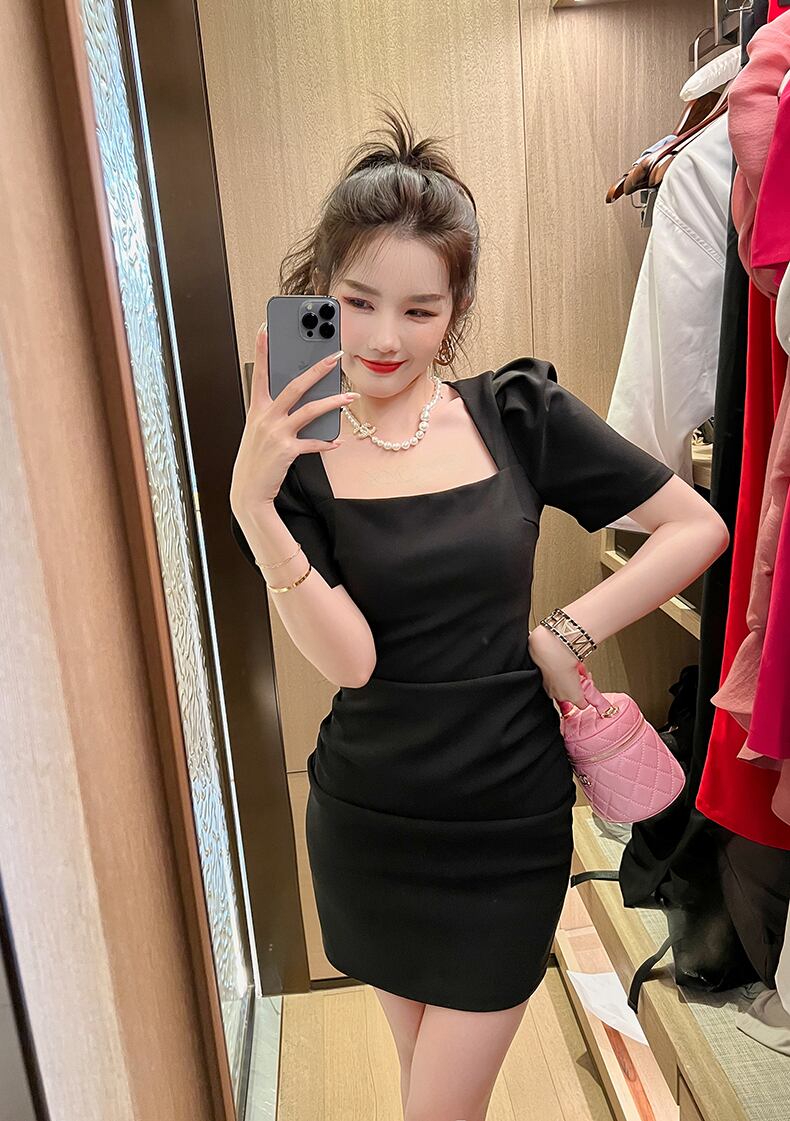 このワンピースの魅力は、その美しいシルエットにあります。スリムでタイトなシルエットは、着るだけで脚長効果を生み出し、女性らしい魅力を引き立てます。さらに、ストレートなIラインが体のラインをスッキリと見せてくれます。