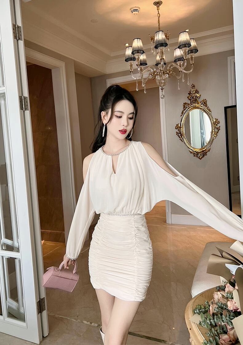 タイトなミニスカートにオフショルダーが特徴的なドレスワンピースです。