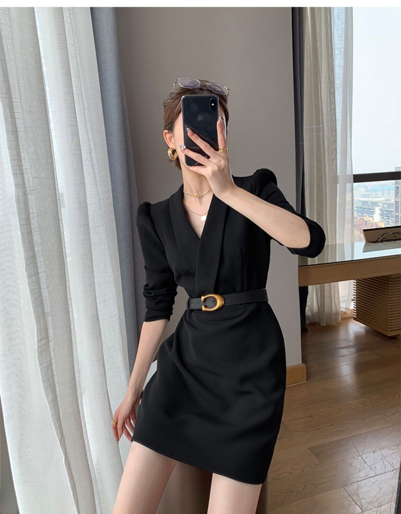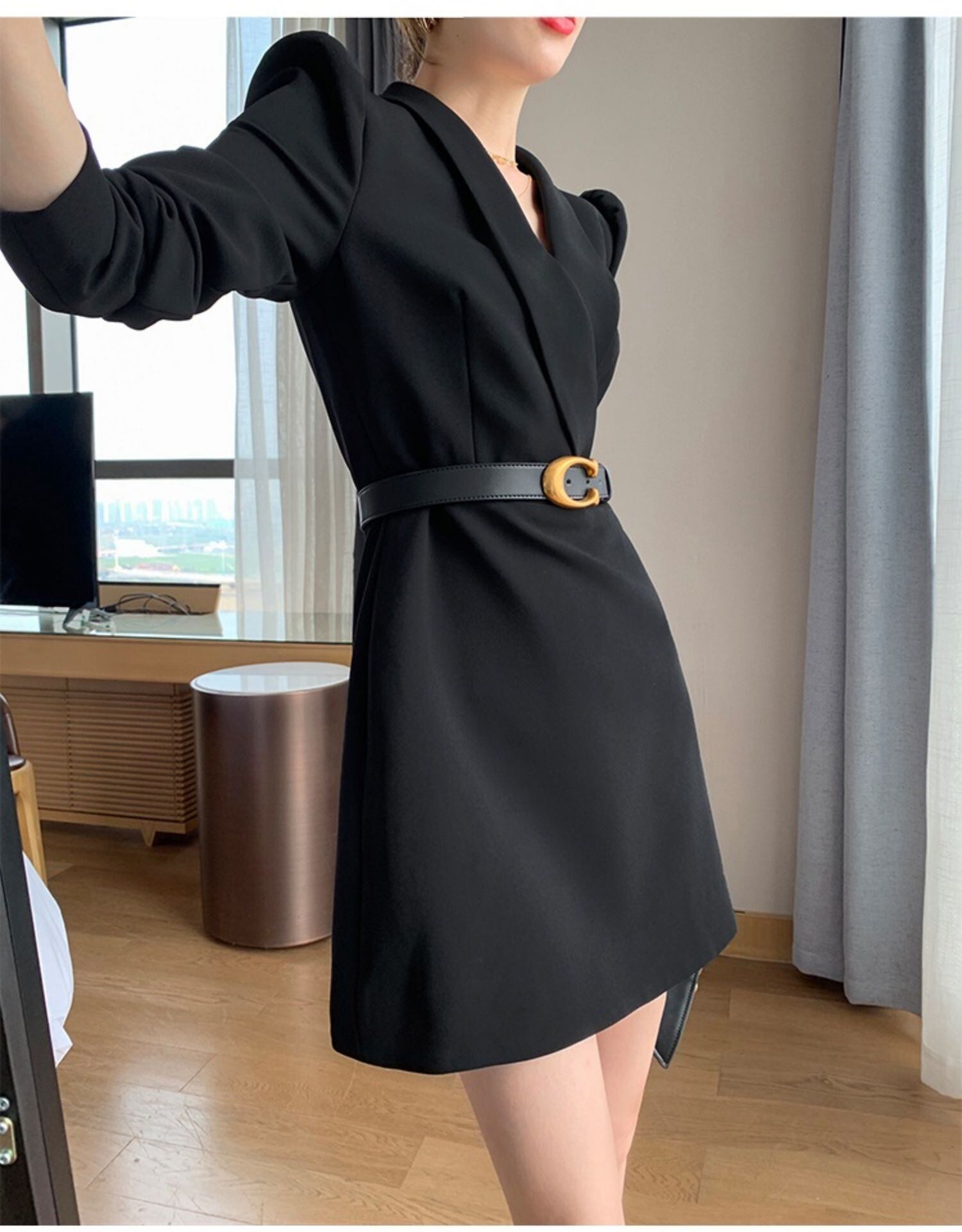 スタイリッシュなVネックと襟付きデザインが大人可愛い印象を演出します。フィット感のあるショート丈とAラインのシルエットが女性らしさを引き立て、ハイウエストで脚長効果も期待できます。さまざまなシーンで活躍するスーツワンピースは、上品かつ個性的な雰囲気でクールモード系からエレガントなスタイルまで、幅広いスタイリングが可能。
