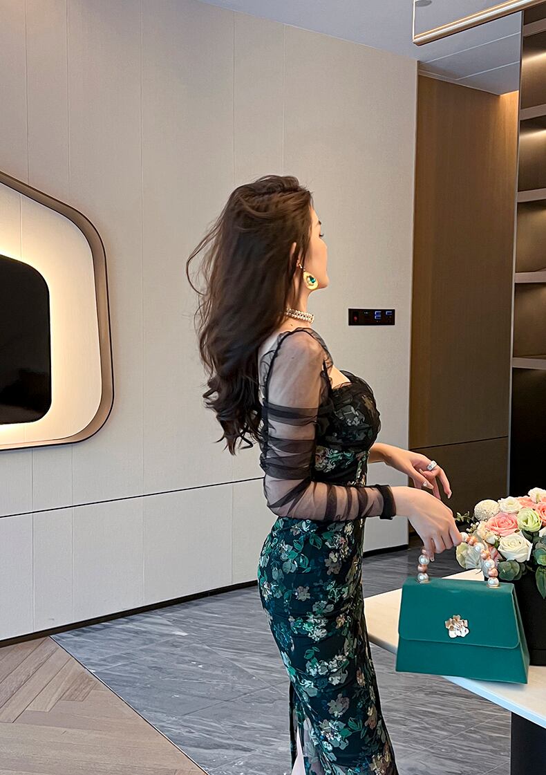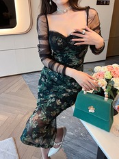 大人可愛いデザインのミディアム丈ワンピースです。膝丈でありながら、パフスリーブやスクエアネックのデザインが女性らしさを引き立てます。さらに、ハイウエストのストレートなシルエットがスリムで細身に見せてくれます。レースやバックスリットで上品な透け感とエレガントさが魅力的です。