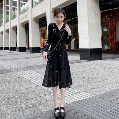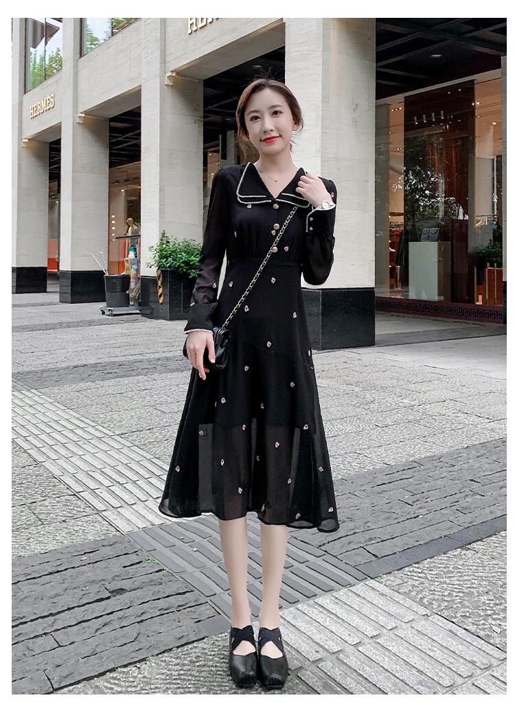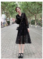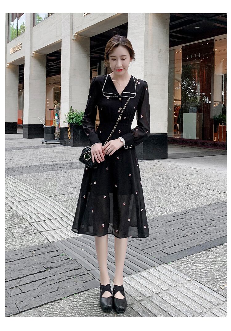 優雅なVネックと襟付きのデザインで、女性らしさを引き立てます。フレアスリムのAラインシルエットがスタイルを美しく見せながら、ウエストマークで華奢な印象も与えます。透け感のある素材が抜け感を演出し、かわいらしさを倍増させます。