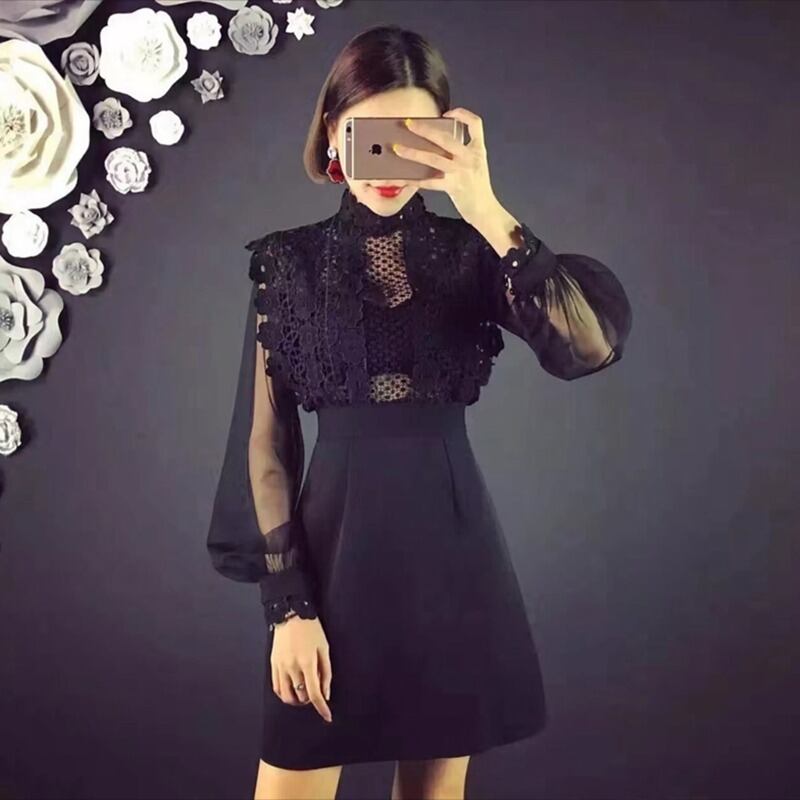 ドレッシーセレブな存在感を放つ、パーティードレスが登場しました!スタンドカラーと切り替えデザインが特徴で、Aラインのシルエットが女性らしい優雅さを引き立てます。チュール素材とクロシェのドッキングが施されたデザインは、抜け感や華やかさを演出してくれます。