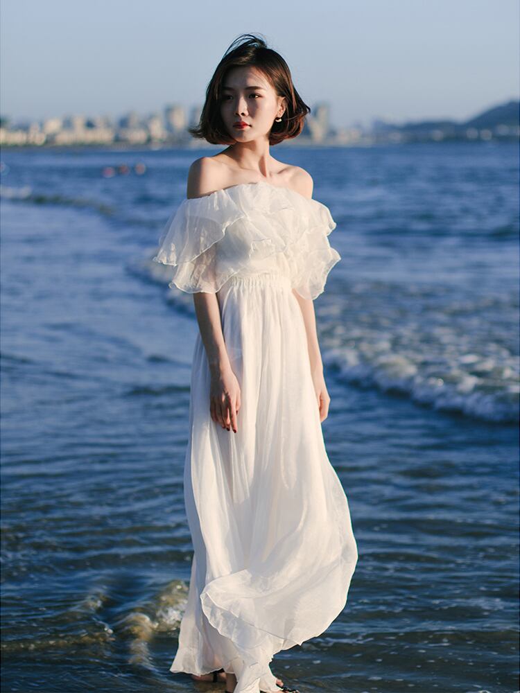 着るだけで華やかさを演出する、ビーチ シフォンロングワンピのご紹介です。オフショルダーのデザインが女性らしい魅力を引き立て、大人可愛い雰囲気を演出します。ワンピースのロング丈デザインは、エレガントさと上品さを同時に叶えます。