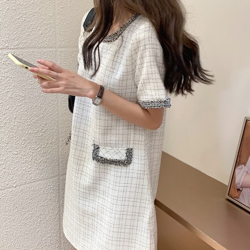 シンプルで上品なツイードワンピースです。白と黒の二色展開で、キレイめから可愛い系までお好みのスタイルにあわせてコーディネートできます。