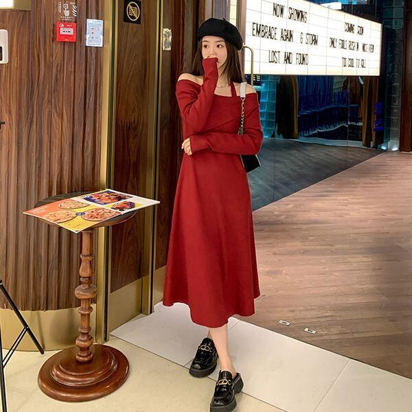 大人可愛いが漂う、シンプルで上品なミモレ丈ワンピース。